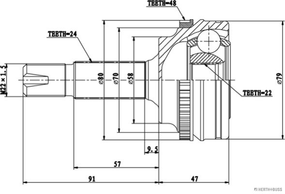 Homokineet rep.set HERTH+BUSS JAKOPARTS J2822142